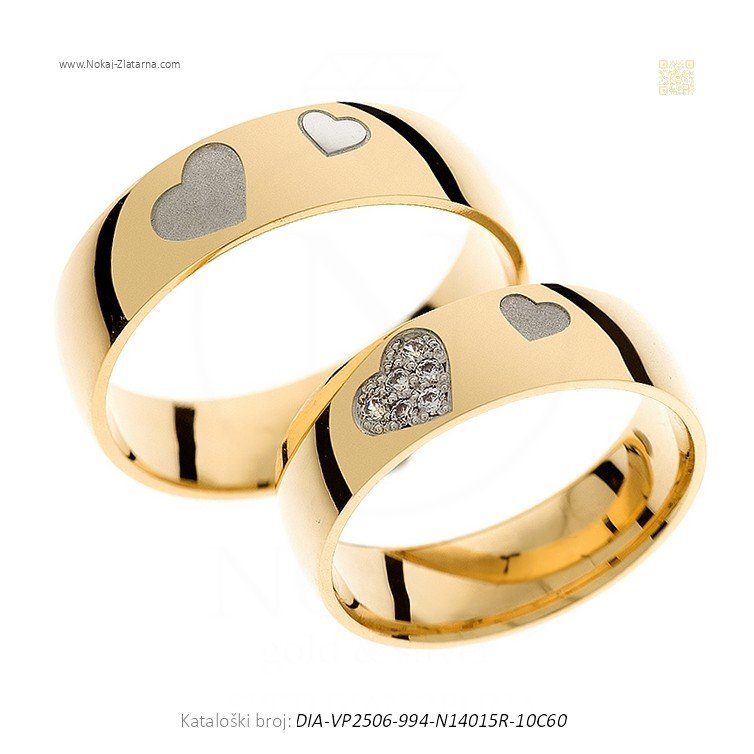 ✨ Vjenčani prsten. Čvrsti korijen za vašu budućnost. Štiti osjećaj ekskluzivnosti, a dostupan je i za svakodnevno nošenje. Luksuzni nakit izrađen od zlata čistoće 585/1000. Boja materijala:Kombinacija žutog i bijelog zlata. Posebnost ovog nakita uključuje 2 x 💠 Dijamant 0,015 ct. Prirodni dijamant 0,015 ct. Pruža diskretan, ali izražen sjaj. Čistoća i boja: Čistoće 🔹SI (mala unutarnja uključenja) i boje 🔹G (skoro bezbojan, s blagim tragovima boje koji su nevidljivi golim okom, što dijamant čini vrlo cijenjenim). Oblik: Okrugli briljantni rez (🔹Round) je najpopularniji oblik dijamanta, poznat po svojoj vrhunskoj briljantnosti i maksimalnom sjaju. 4 x 💠 Dijamant 0,01 ct, SI/G (Round brilliant). Motiv: Srce. Simbol koji slavi ljubav, prijateljstvo i zajedništvo.