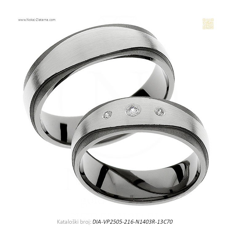 ✨ Vjenčani prsten. Pouzdan suputnik kroz sve životne faze. U sebi nosi tradiciju, istovremeno odražavajući suvremene trendove i stilove. zlato čistoće 585/1000 koje naglašava profinjenost. Boja materijala:Kombinacija bijelog zlata i crnog rodija. Nakit je izrađen s 1 x 💠 Dijamant 0,03 ct. Prirodni dijamant 0,03 ct. Naglašava suptilne svjetlosne refleksije. Čistoća i boja: Čistoće 🔹SI (mala unutarnja uključenja) i boje 🔹G (skoro bezbojan, s blagim tragovima boje koji su nevidljivi golim okom, što dijamant čini vrlo cijenjenim). Oblik: Okrugli briljantni rez (🔹Round) je najpopularniji oblik dijamanta, poznat po svojoj vrhunskoj briljantnosti i maksimalnom sjaju. 2 x 💠 Dijamant 0,01 ct, SI/G (Round brilliant).
