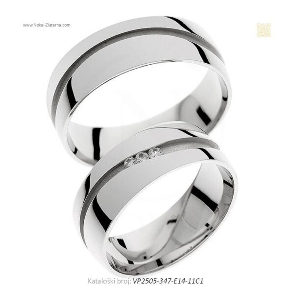 Vjenčano prstenje koje spaja modernu jasnoću i tradicionalnu simboliku. Moderna verzija klasičnog stila, stvorena za proslavu ljubavi na profinjen način. Izrađen od 14-karatnog zlata čistoće 585/1000. Boja materijala:Bijelo zlato. Cirkoni. Cirkoni naglašavaju obostranu usklađenost i sklad u paru.