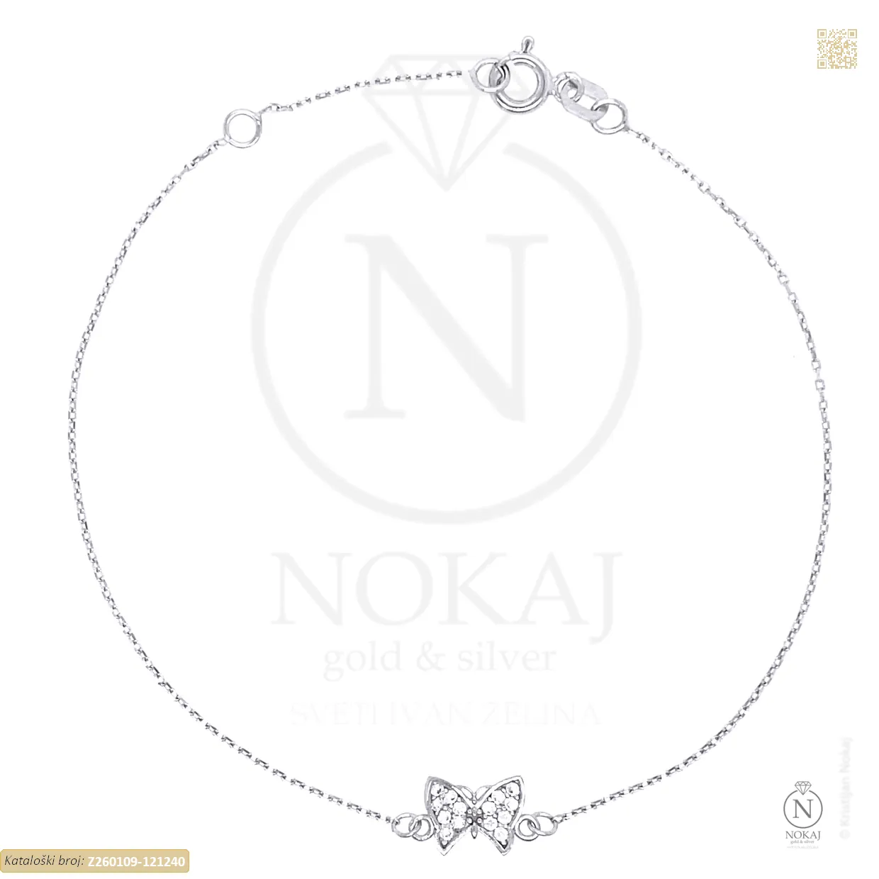 Zlatna narukvica izrađena iz 14-karatnog bijelog zlata (585/1000) ukrašena cirkonima s motivom leptira.