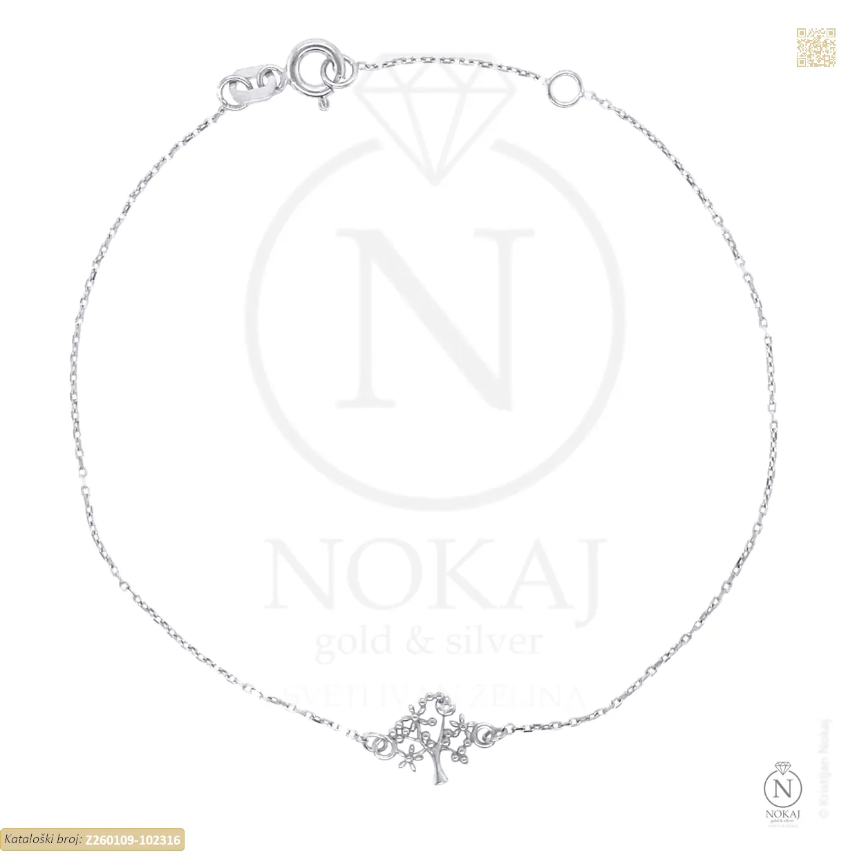 Zlatna narukvica izrađena izrađen od 14k bijelog zlata – čistoća 585/1000 s motivom stabla života.