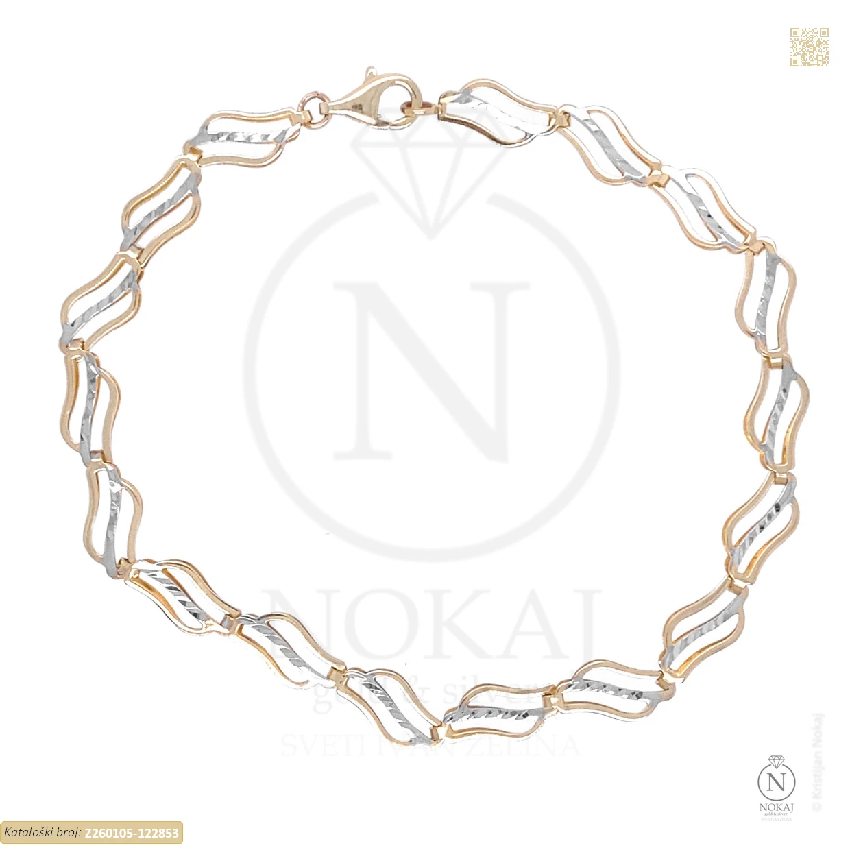 Zlatna narukvica izrađena od 14-karatnog žutog i bijelog zlata čistoće 585/1000.