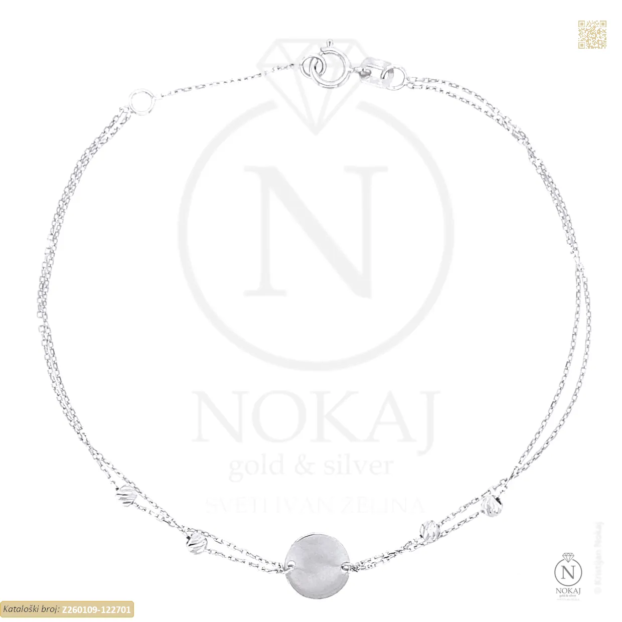 Zlatna narukvica izrađena izrađen od 14k bijelog zlata – čistoća 585/1000.