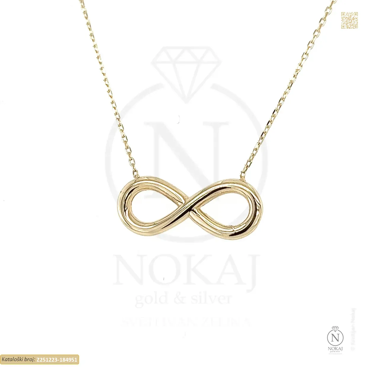 Zlatna ogrlica izrađena izrađen od 14k žutog zlata – čistoća 585/1000 s motivom beskonačnosti.