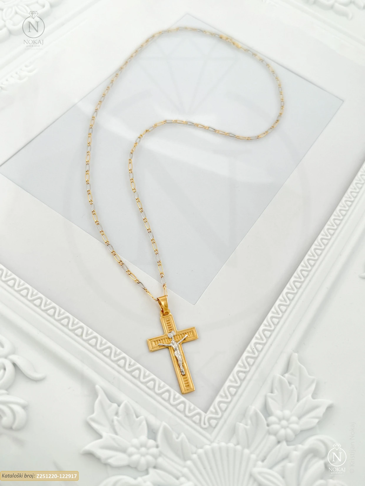 Zlatni lančić izrađen iz 14-karatnog žutog i bijelog zlata (585/1000) s motivom križa – duhovni simbol zaštite i snage..