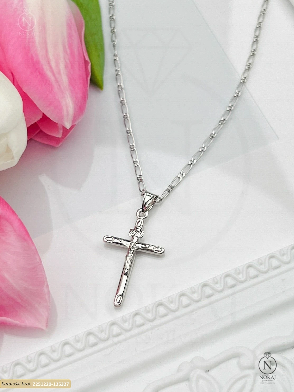 Zlatni vjerski lančić izrađen iz 14-karatnog bijelog zlata (585/1000) s motivom križa – znak vjere i duhovne privrženosti..