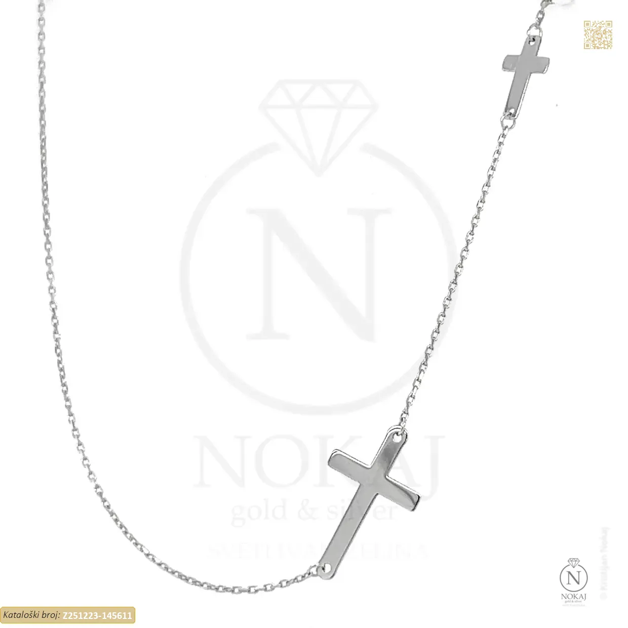 Zlatna ogrlica izrađena izrađen od 14k bijelog zlata – čistoća 585/1000 s motivom križa – znak vjere i duhovne privrženosti..