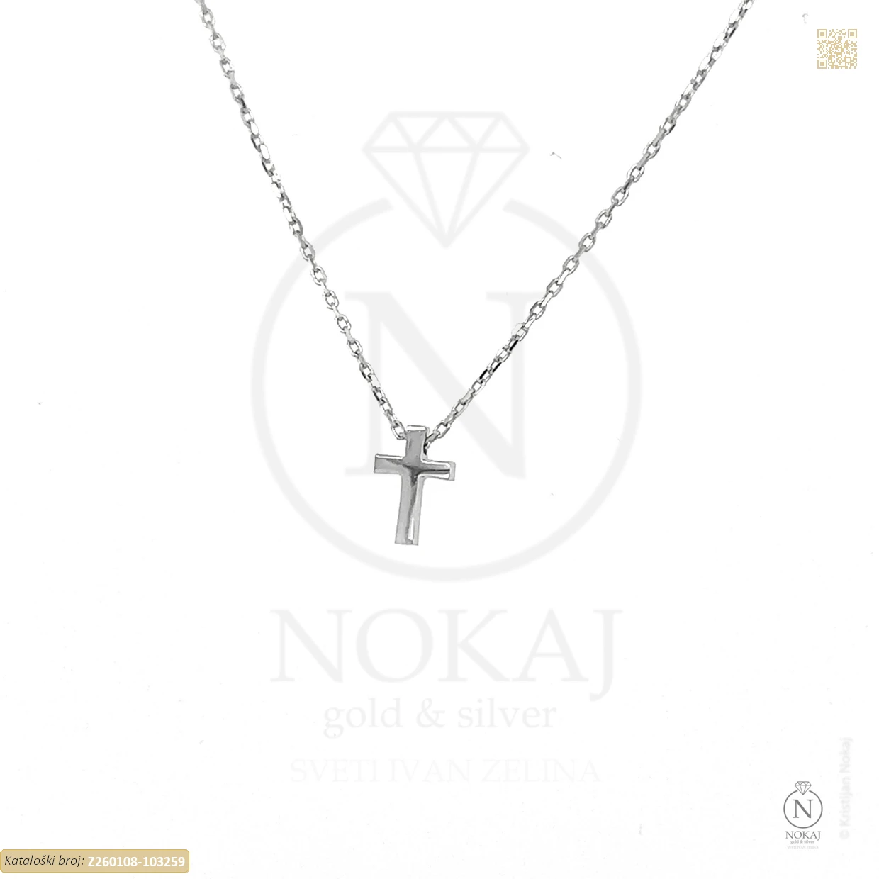 Zlatna ogrlica izrađena izrađen od 14k bijelog zlata – čistoća 585/1000 s motivom križa.