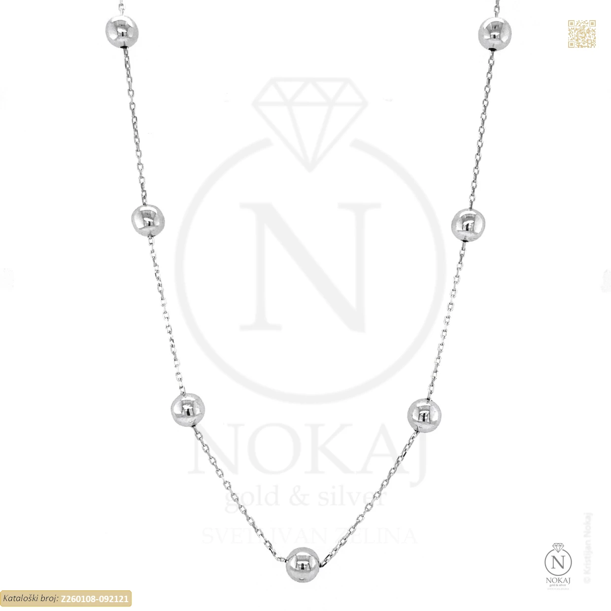 Lančić:, duljina: 42+3 cm, debljina: 0.6 mm • kuglice:3 mm