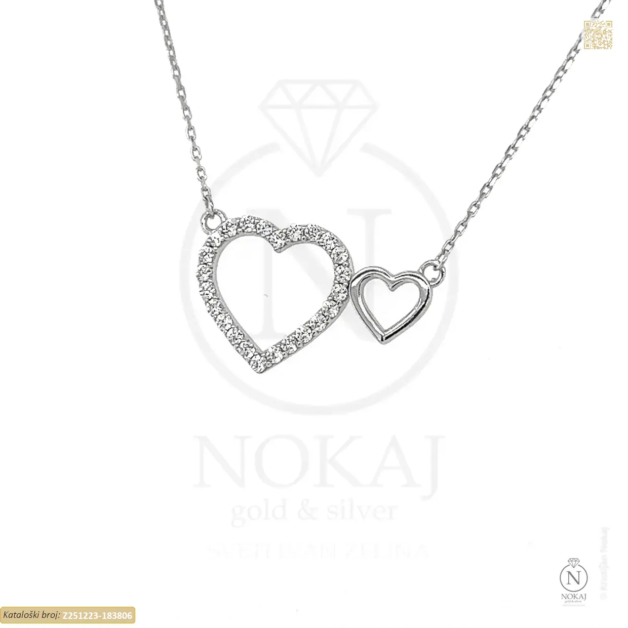 Zlatna ogrlica izrađena od 14-karatnog bijelog zlata čistoće 585/1000 s motivom srca.