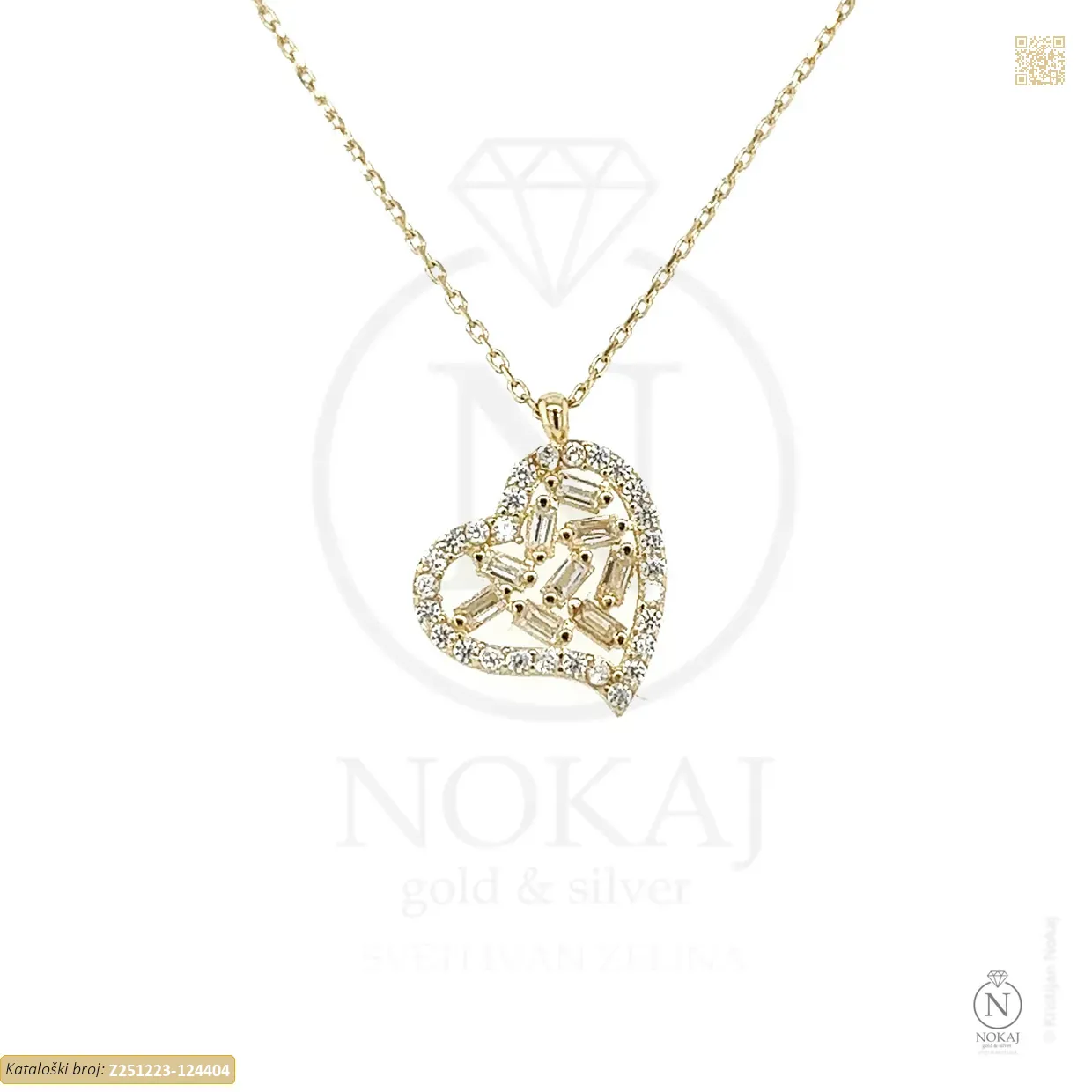 Zlatna ogrlica izrađena izrađen od 14k žutog zlata – čistoća 585/1000 ukrašena cirkonima s motivom srce – simbol ljubavi i topline, savršen za izražavanje osjećaja..