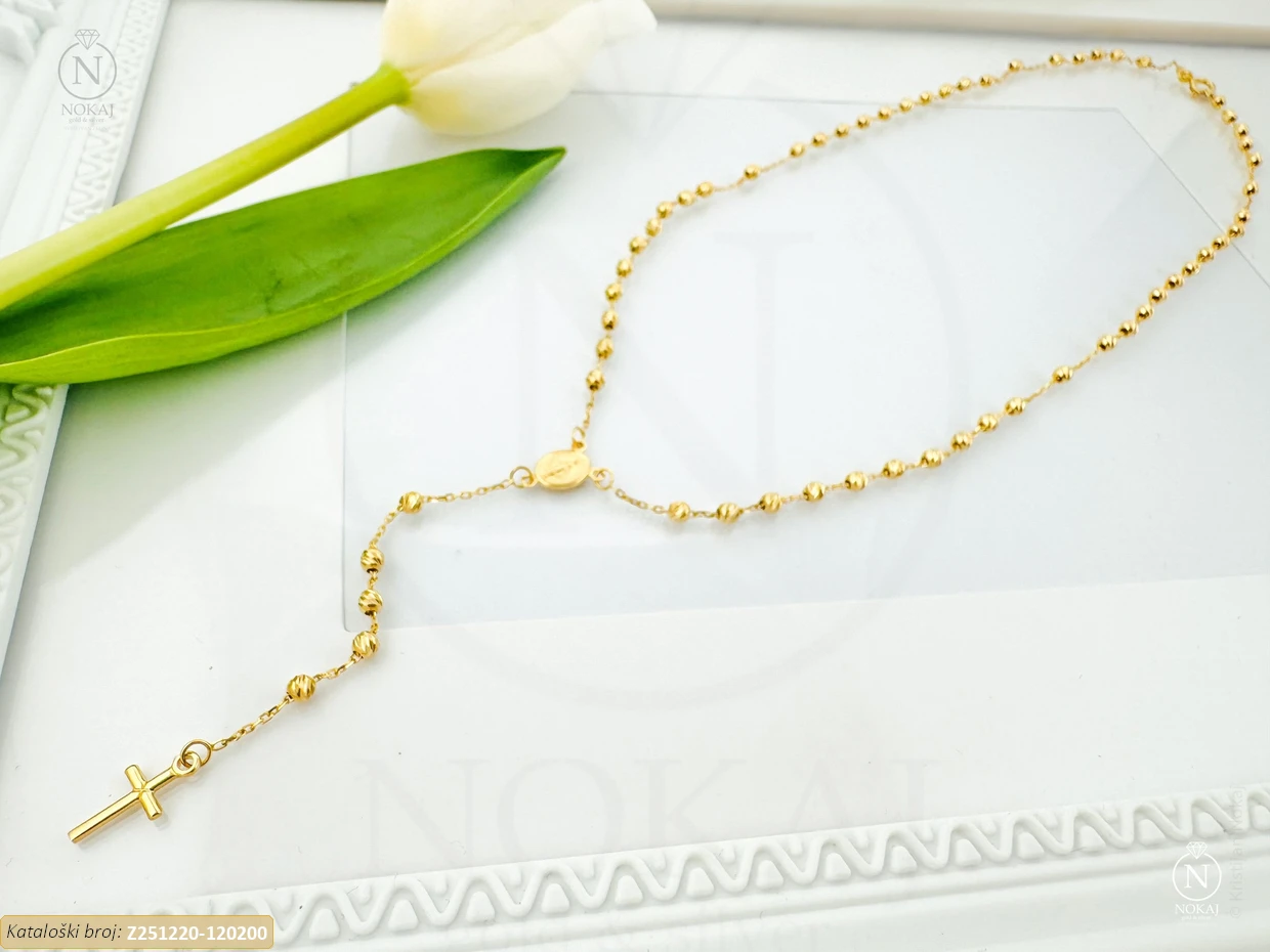 Ogrlica:, duljina: 45 cm • Mjera kuglice: 2,9 mm, mjera križa 13x7 mm, mjera majke božje 11x7 mm