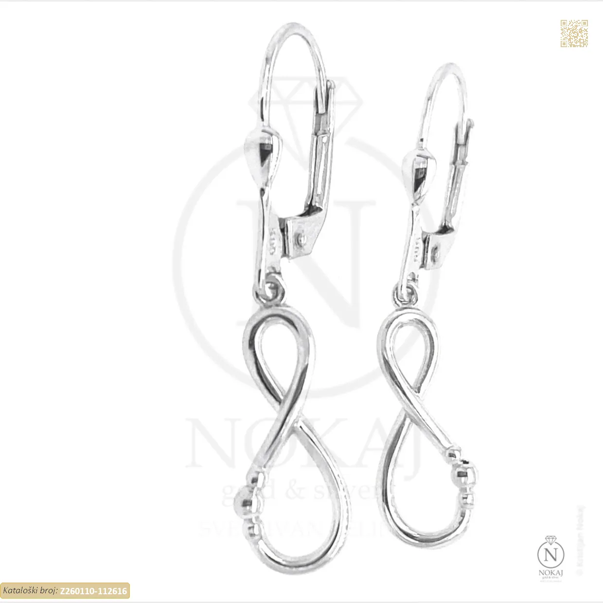 Zlatne naušnice izrađene iz 14-karatnog bijelog zlata (585/1000) s motivom beskonačnosti.
