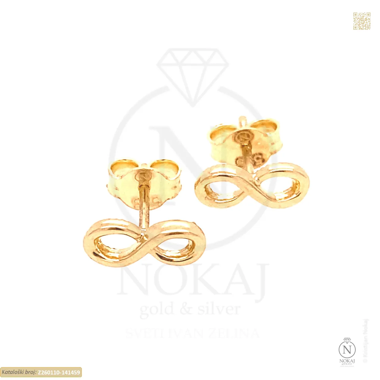 Zlatne naušnice izrađene od 14-karatnog žutog zlata čistoće 585/1000 ukrašene bezom s motivom beskonačnosti.