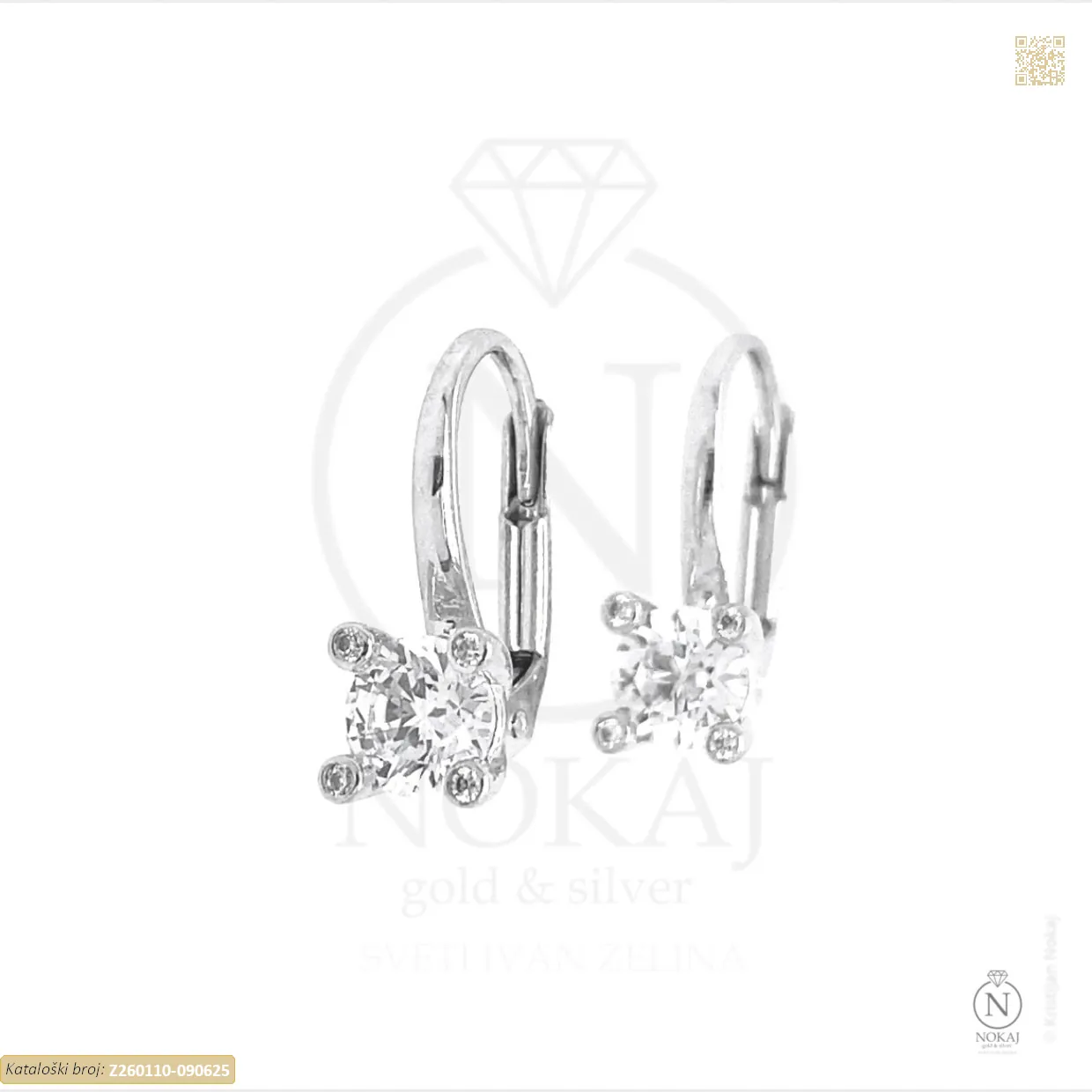 Zlatne naušnice izrađene od 14-karatnog bijelog zlata čistoće 585/1000 ukrašene cirkonima.