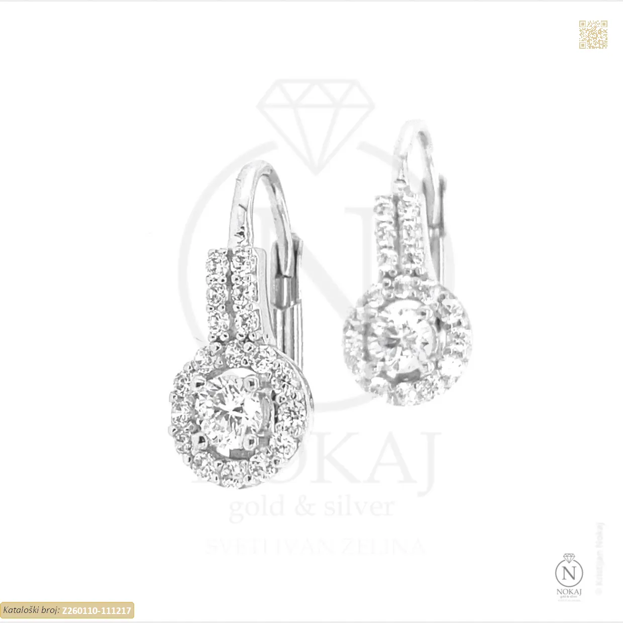 Zlatne naušnice izrađene od 14-karatnog bijelog zlata čistoće 585/1000 ukrašene cirkonima.