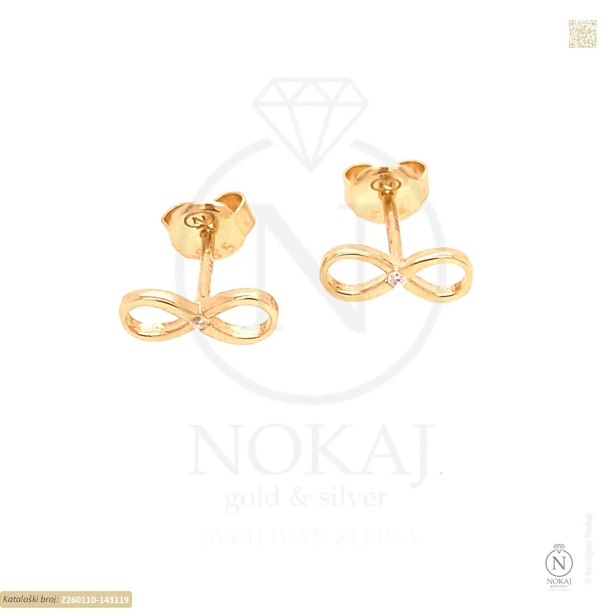 Zlatne naušnice izrađene iz 14-karatnog žutog zlata (585/1000) ukrašene cirkonom s motivom beskonačnosti.