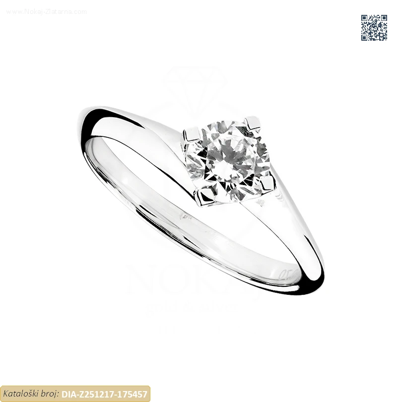 Zlatni prsten izrađen od 14-karatnog bijelog zlata čistoće 585/1000 ukrašen prirodnim dijamantom.