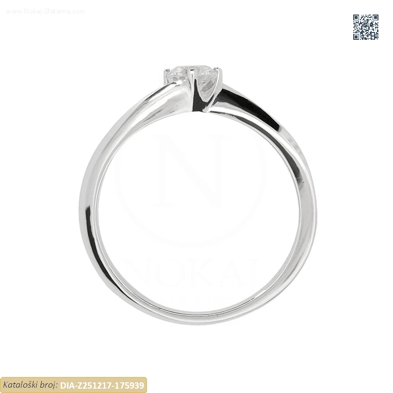 Zlatni prsten izrađen od 14-karatnog bijelog zlata čistoće 585/1000 ukrašen prirodnim dijamantom.