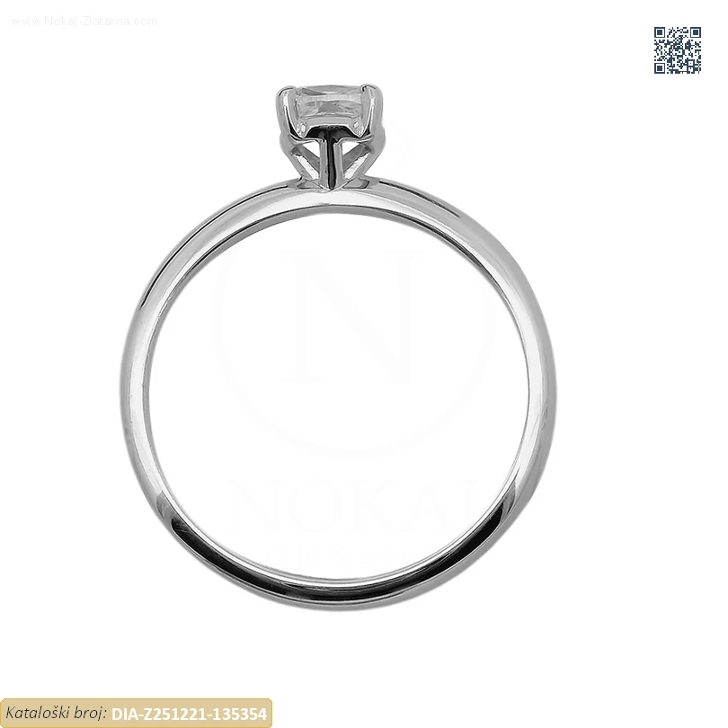 Zlatni prsten izrađen od 14-karatnog bijelog zlata čistoće 585/1000 ukrašen prirodnim dijamantom.