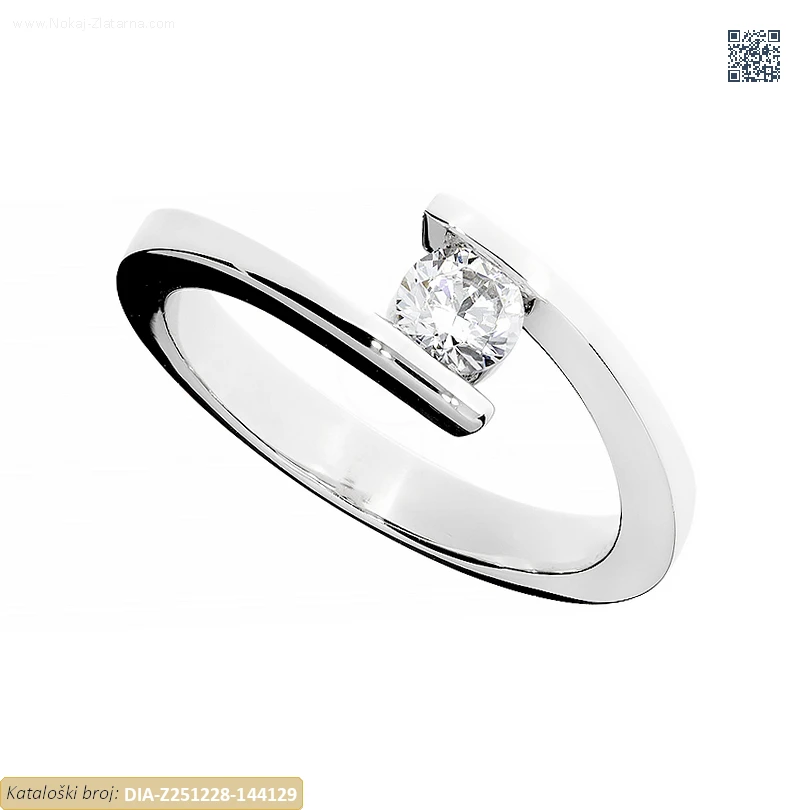 Zlatni prsten izrađen od 14-karatnog bijelog zlata čistoće 585/1000 ukrašen prirodnim dijamantom.