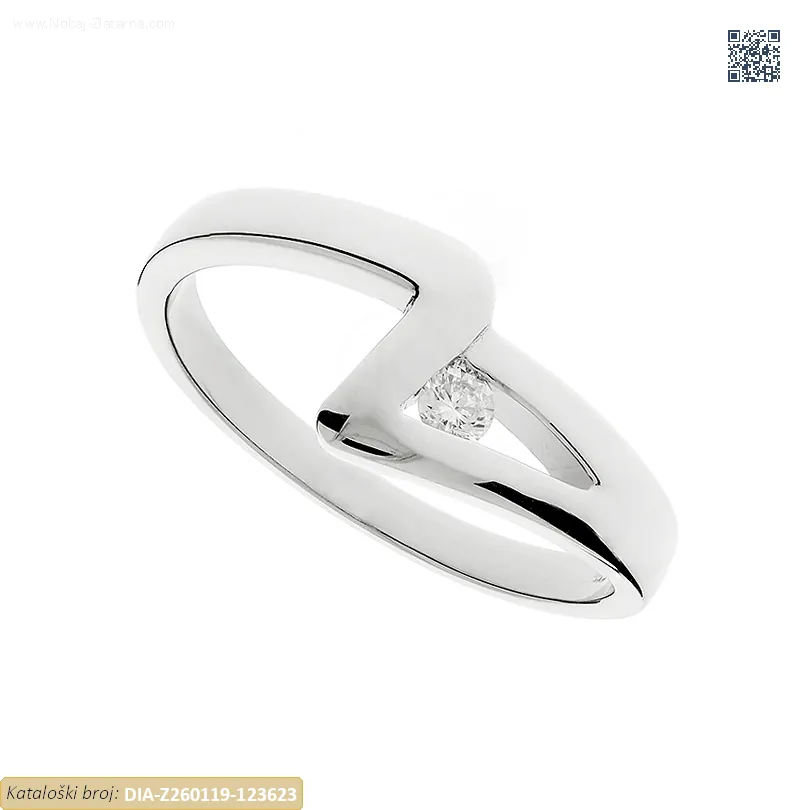 Zlatni prsten izrađen izrađen od 14k bijelog zlata – čistoća 585/1000 ukrašen prirodnim dijamantom.
