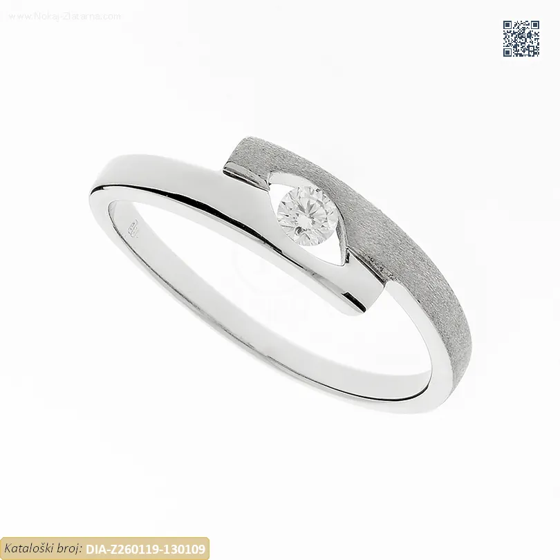 Zlatni prsten izrađen od 14-karatnog bijelog zlata čistoće 585/1000 ukrašen prirodnim dijamantom.