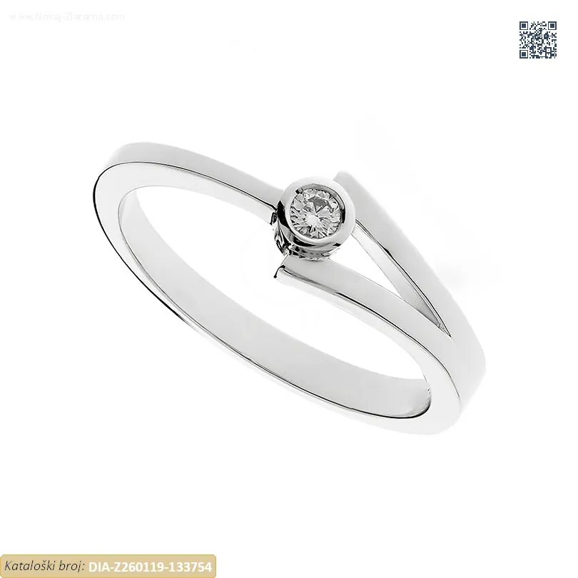 Zlatni prsten izrađen od 14-karatnog bijelog zlata čistoće 585/1000 ukrašen prirodnim dijamantom.
