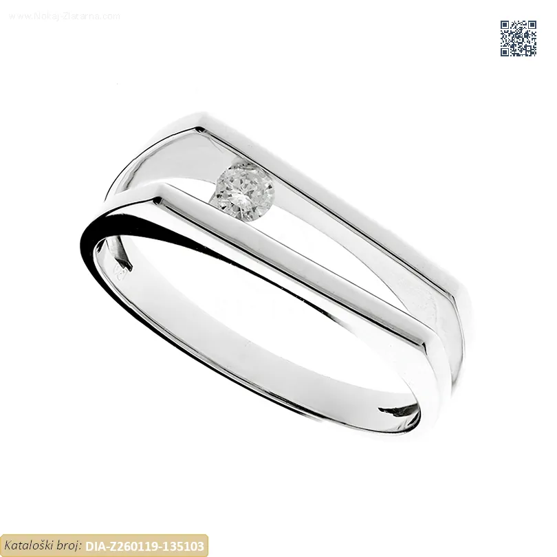 Zlatni prsten izrađen izrađen od 14k bijelog zlata – čistoća 585/1000 ukrašen prirodnim dijamantom.