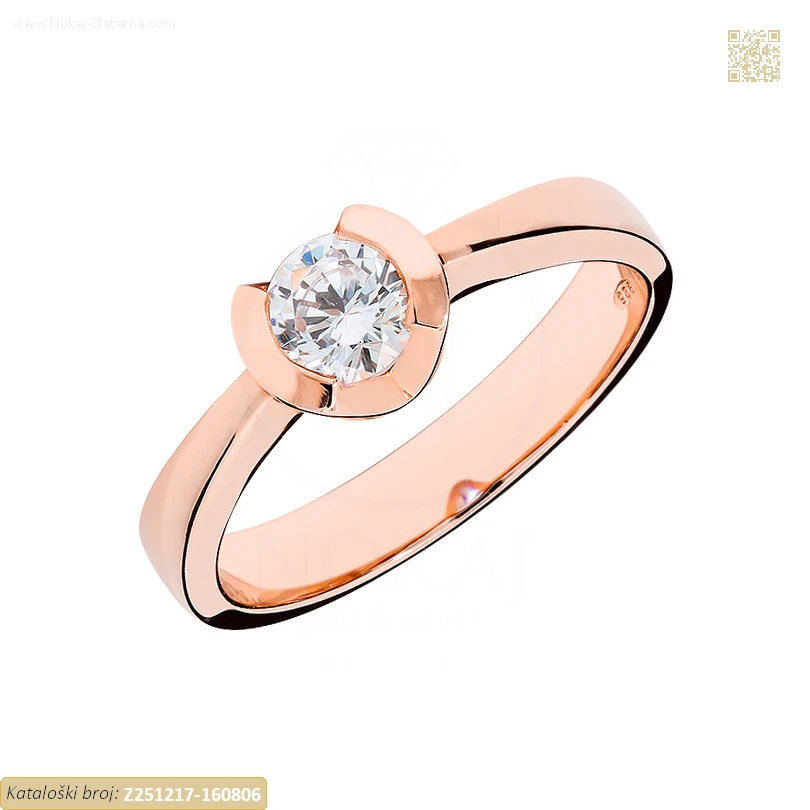 Zlatni prsten izrađen od 14-karatnog ružičastog zlata čistoće 585/1000 ukrašen cirkonom.