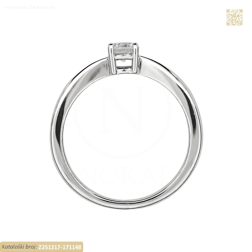 Zlatni prsten izrađen od 14-karatnog bijelog zlata čistoće 585/1000 ukrašen cirkonom.