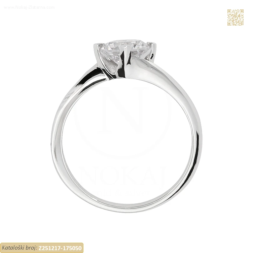 Zlatni prsten izrađen izrađen od 14k bijelog zlata – čistoća 585/1000 ukrašen cirkonom.