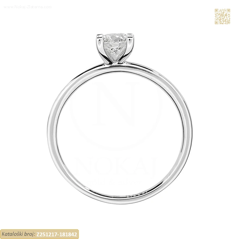 Zlatni prsten izrađen od 14-karatnog bijelog zlata čistoće 585/1000 ukrašen cirkonom.