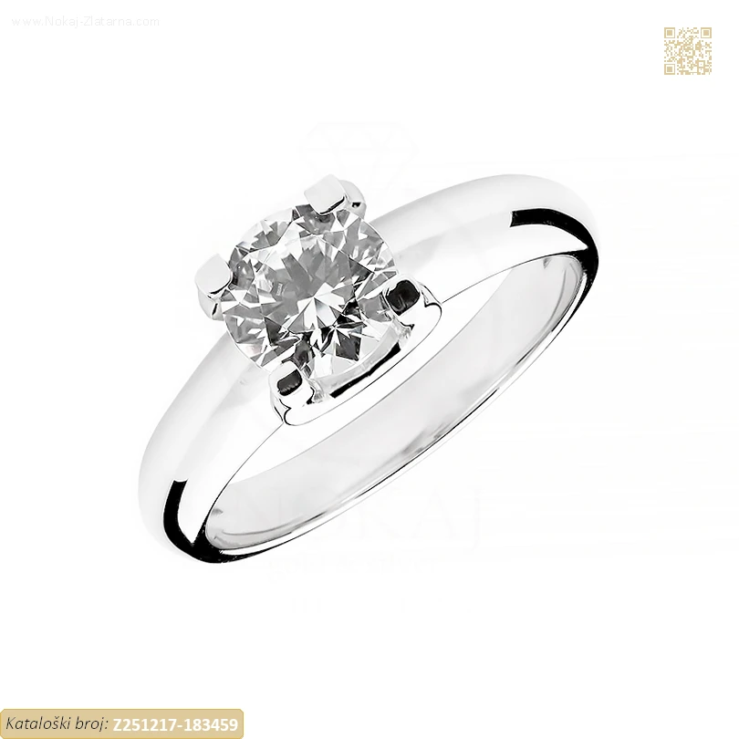 Zlatni prsten izrađen od 14-karatnog bijelog zlata čistoće 585/1000 ukrašen cirkonom.