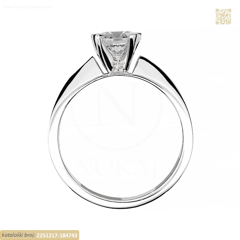 Zlatni prsten izrađen izrađen od 14k bijelog zlata – čistoća 585/1000 ukrašen cirkonom.