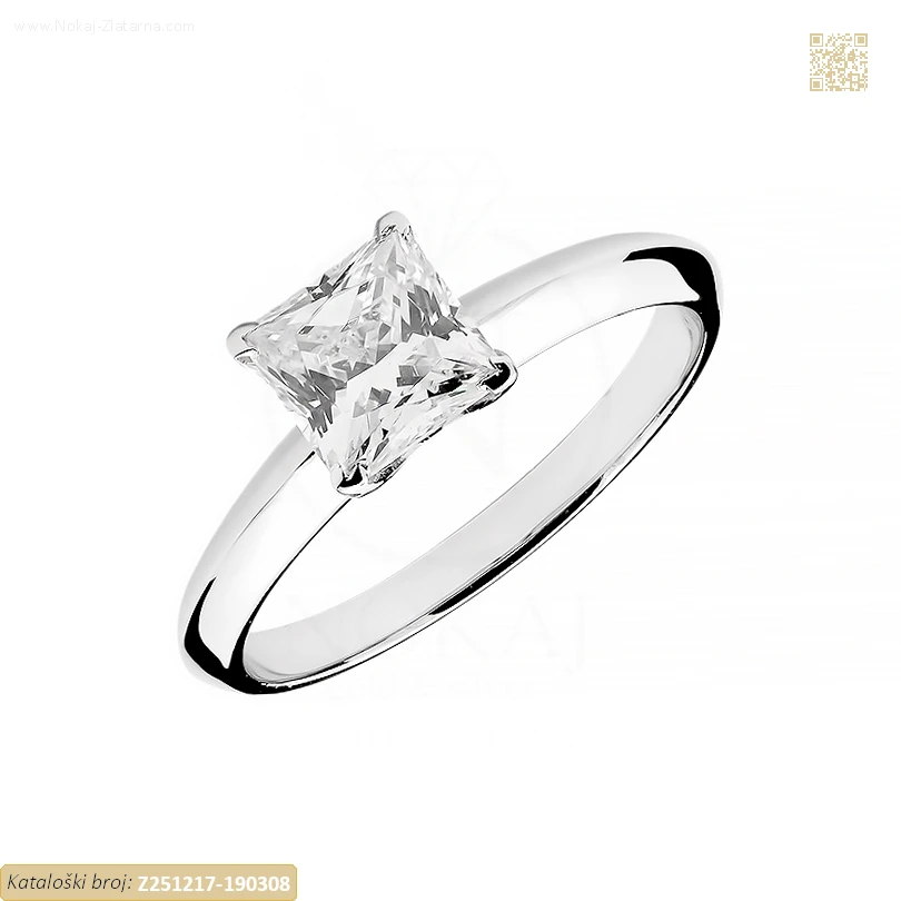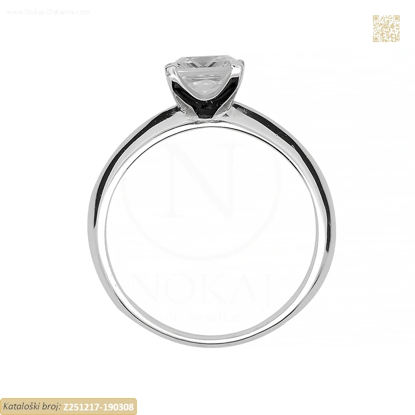 Zlatni prsten izrađen iz 14-karatnog bijelog zlata (585/1000) ukrašen cirkonom.