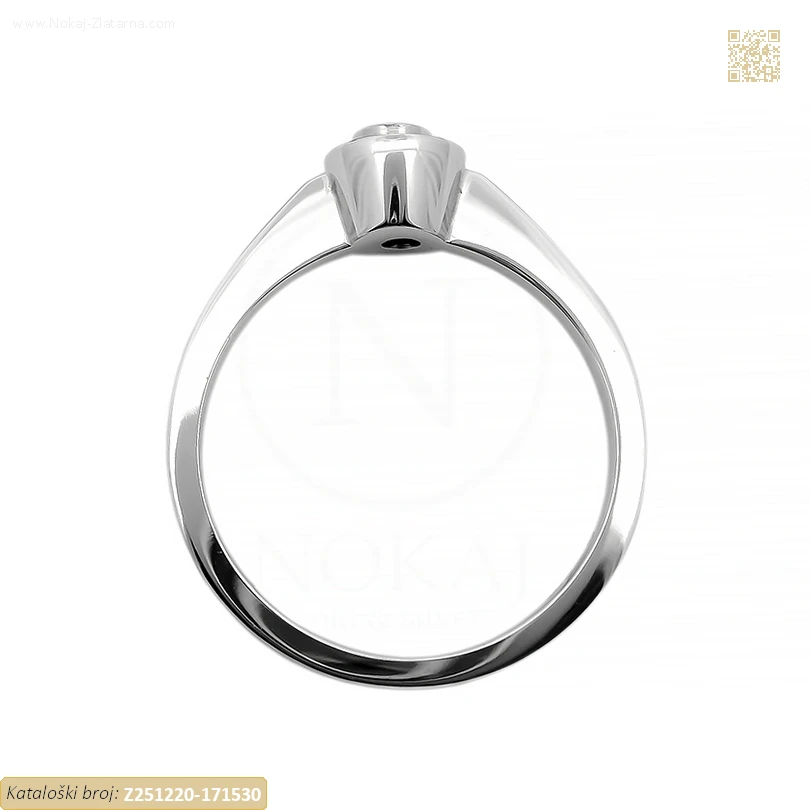 Zlatni prsten izrađen iz 14-karatnog bijelog zlata (585/1000) ukrašen cirkonom.