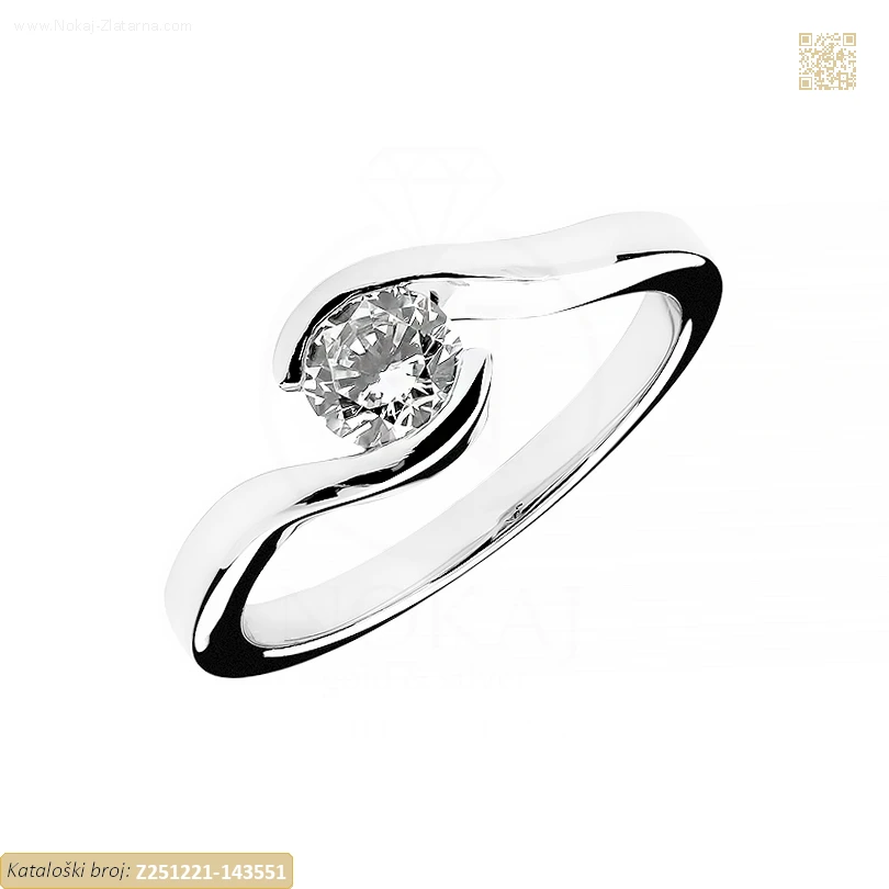 Zlatni prsten izrađen izrađen od 14k bijelog zlata – čistoća 585/1000 ukrašen cirkonom.