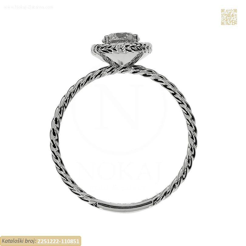 Zlatni prsten izrađen od 14-karatnog bijelog zlata čistoće 585/1000 ukrašen cirkonom.