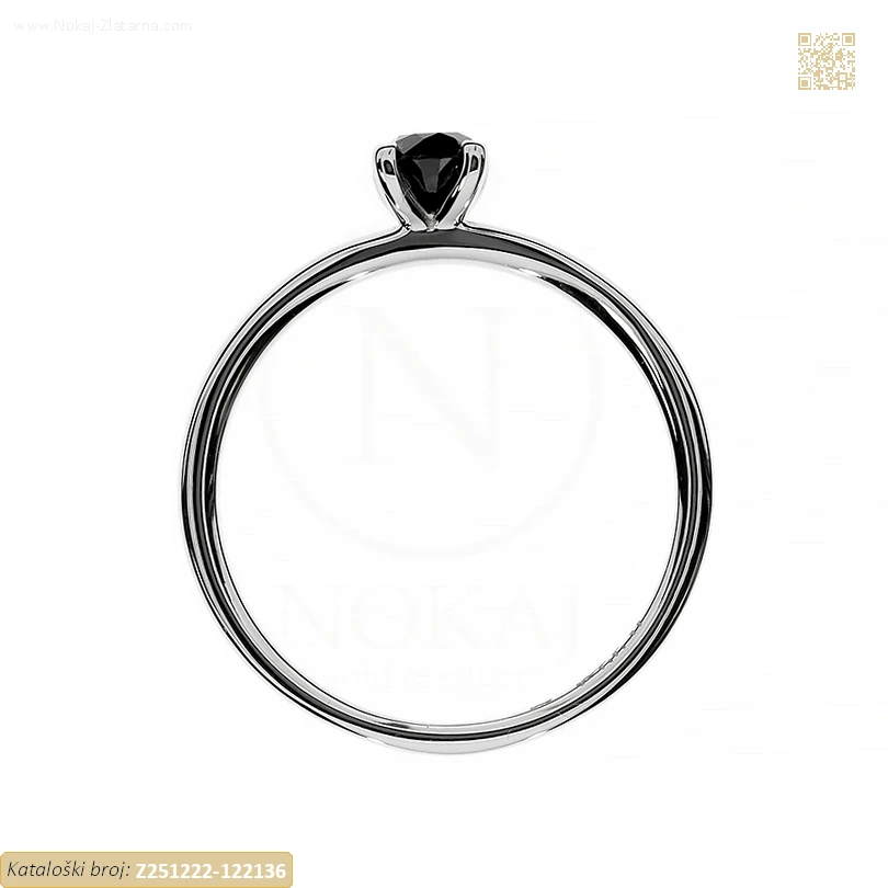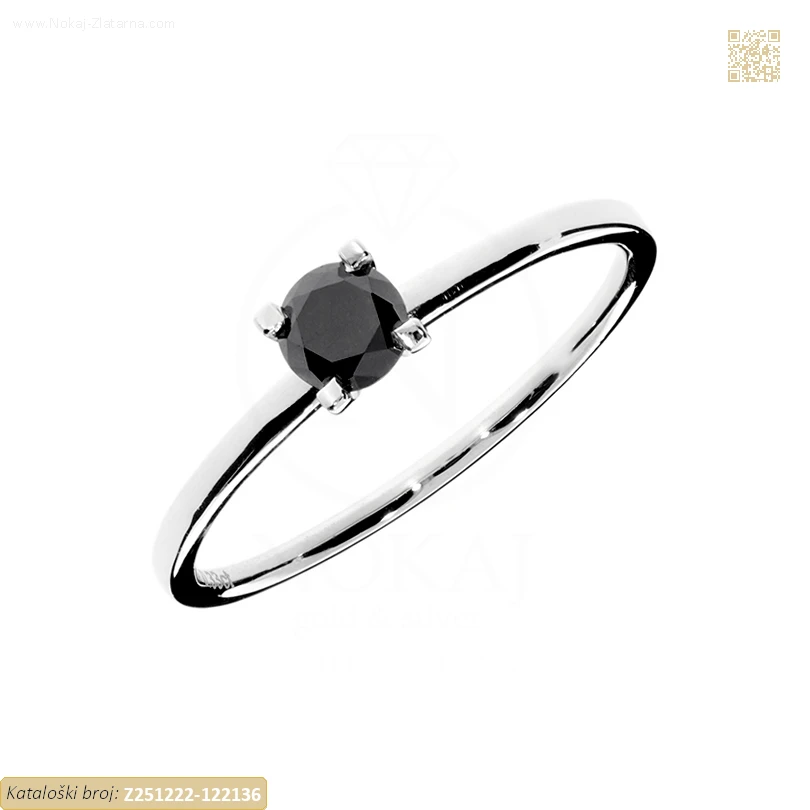 Zlatni prsten izrađen od 14-karatnog bijelog zlata čistoće 585/1000 ukrašen crnim cirkonom.