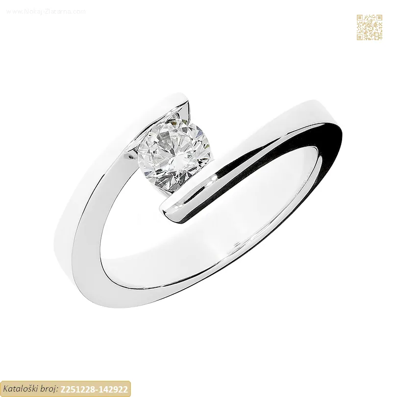 Zlatni prsten izrađen od 14-karatnog bijelog zlata čistoće 585/1000 ukrašen cirkonom.