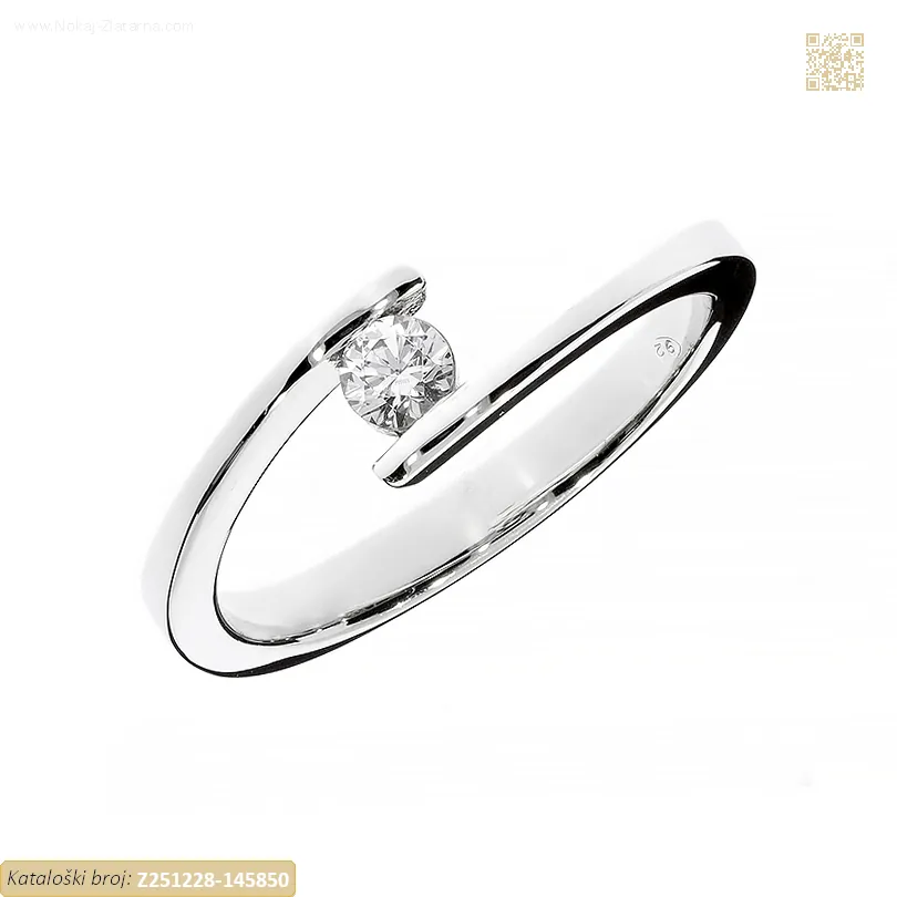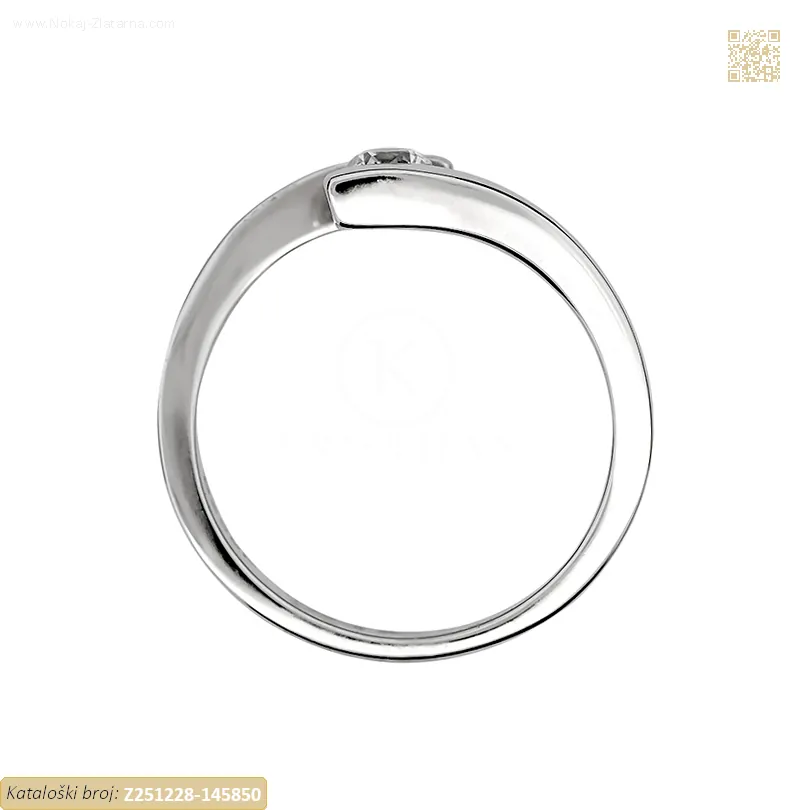 Zlatni prsten izrađen od 14-karatnog bijelog zlata čistoće 585/1000 ukrašen cirkonom.
