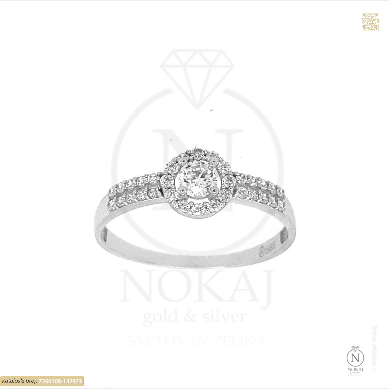 Zlatni prsten izrađen od 14-karatnog bijelog zlata čistoće 585/1000 ukrašen cirkonima.