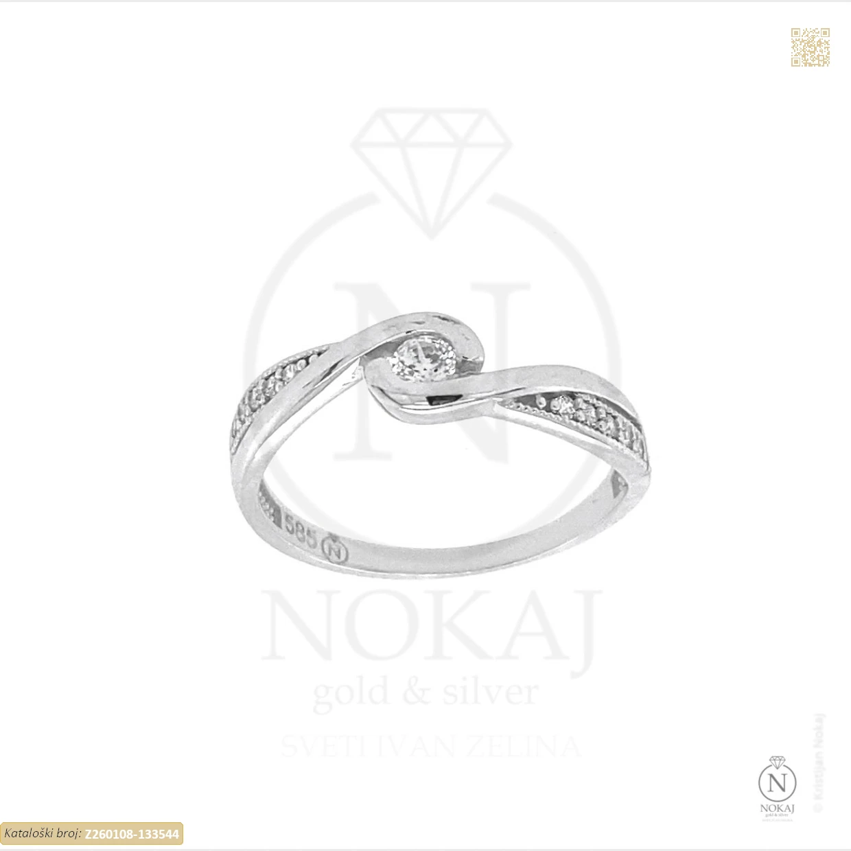 Zlatni prsten izrađen izrađen od 14k bijelog zlata – čistoća 585/1000 ukrašen cirkonima.